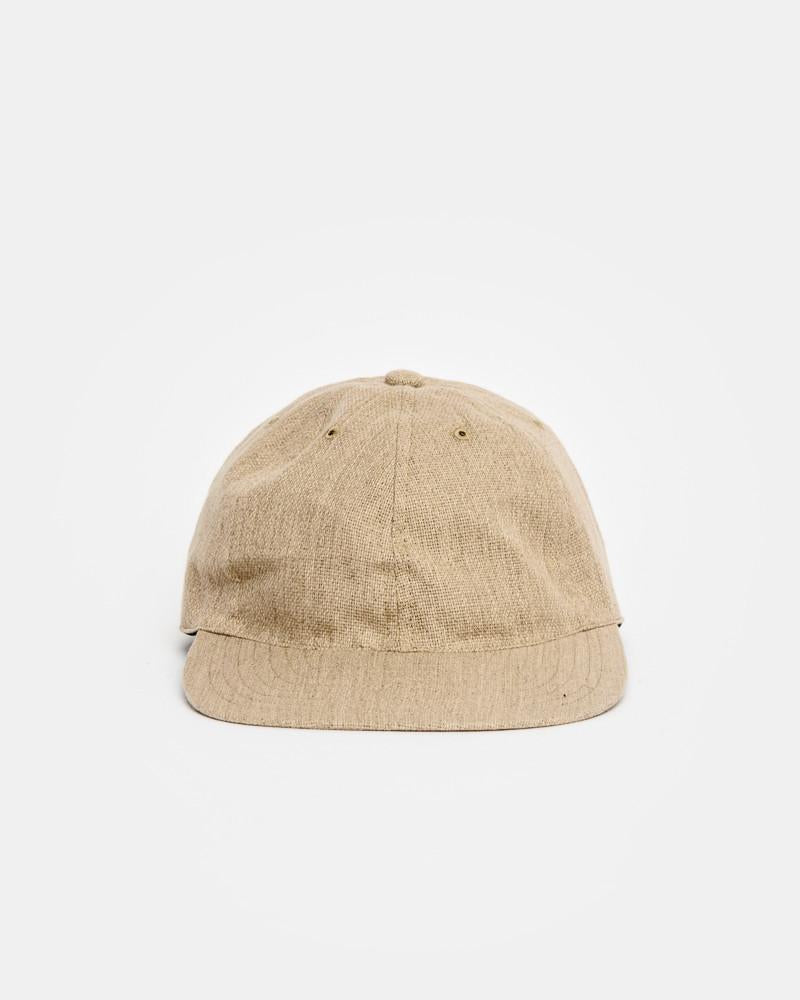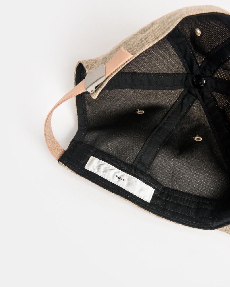 Leather Strap Cap in Tan by SMOCK Man. A light weight and breathable cotton hat finished with six panel detailing, a flexible, quilted brim , six embroidered ventilation rivets and a natural leather adjustable strap at hat back adding a unique addition to this every-day hat.