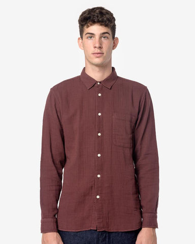 Slim French Seam Vintage Double Gauze Shirt in Bordeaux